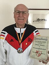 Die Werferfamilie in Schleswig-Holstein, und nicht nur dort, trauert. Johann Hansen, der große Friese, wohnhaft in Risum, ist tot. Seine sportliche Heimat fand er beim TSV Medelby an der dänischen Grenze, wo er über viele Jahre zusammen mit Gerd Gläser und Gerd Drewniok nationale und internationale Erfolge feierte. Johann, genannt Hanni, wurde viermal Weltmeister und zweimal Europameister und errang mehrere Podiumsplätze bei internationalen Meisterschaften. Neben plattdeutsch und friesisch sprach er auch Dänisch und förderte hier über mehrere Jahre den deutsch-dänischen Senioren-Verbände-Mehrkampf, der abwechselnd in Deutschland und Dänemark ausgerichtet wurde. Seine große Armspannweite, die ihn zu einem besonderen Werfer machte, vor allem im Werfer-Fünfkampf, da er über alle Disziplinen hinweg relativ gleich gut war, ließ ihn nicht nur in der Leichtathletik, sondern auch im Badminton, Erfolge erzielen. So wurde er noch mit 75 Jahren Deutscher Meister im Badminton-Doppel. Im Jahr 2018 verlieh ihm der TSV Medelby die Ehrenmitgliedschaft des Vereins. Während der Coronazeit erlitt er mehrere gesundheitliche Rückschläge, was dazu führte, dass er keine Drehbewegung im Sport mehr machen konnte. Anfang des Jahres 2025 musste er dann leider in ein Seniorenheim in Leck umziehen, wo er am 24. Juli im Alter von 87 Jahren eingeschlafen ist.